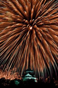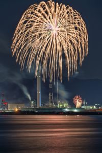 「火を噴く火縄銃」 @yuji.s.san(撮影者)        「空と海を染める大輪」 @alliance1969(撮影者)